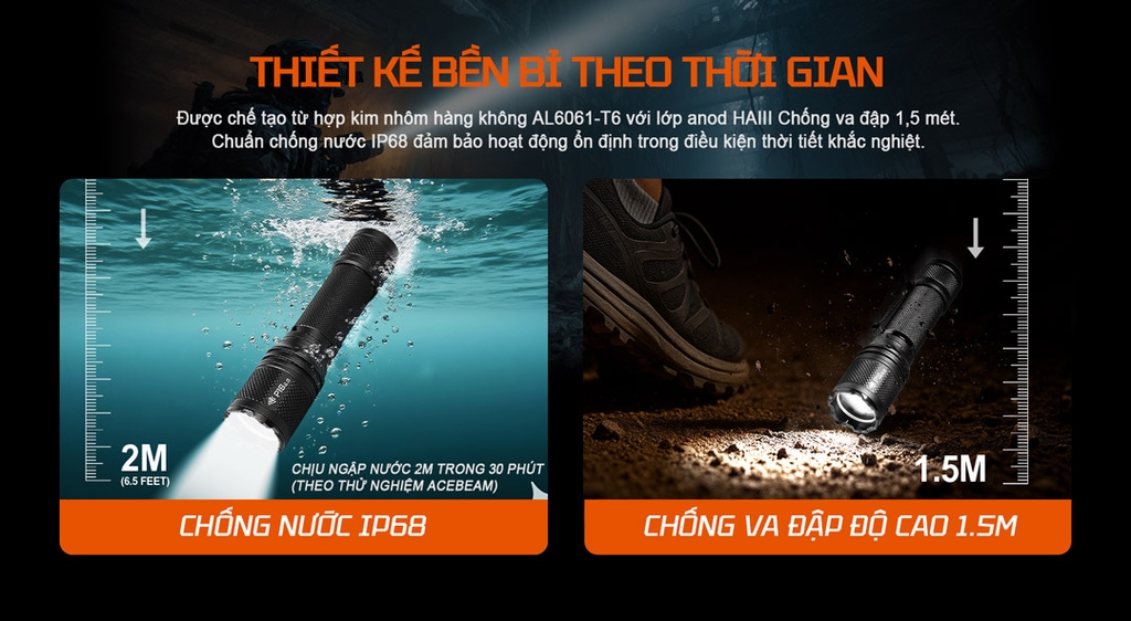 ACEBEAM P16 2.0 chống nước IP68, chịu rơi 1.5m