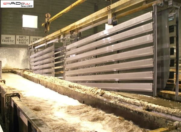 Bước 1: Đưa thanh nhôm vào bể Anodized chứa hóa chất axit sunfuric đặc.