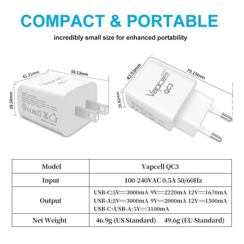 Củ sạc nhanh Vapcell QC3 18W – 2 cổng USB-A & USB-C, hỗ trợ QC3.0/PD