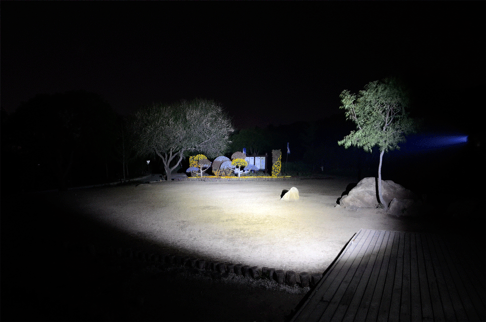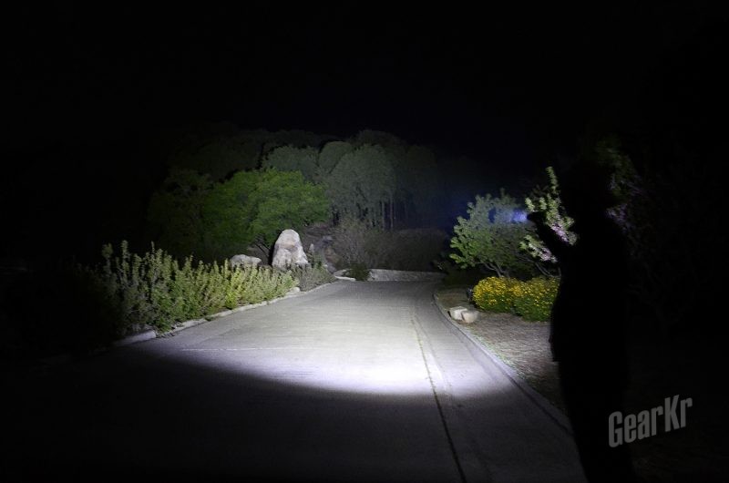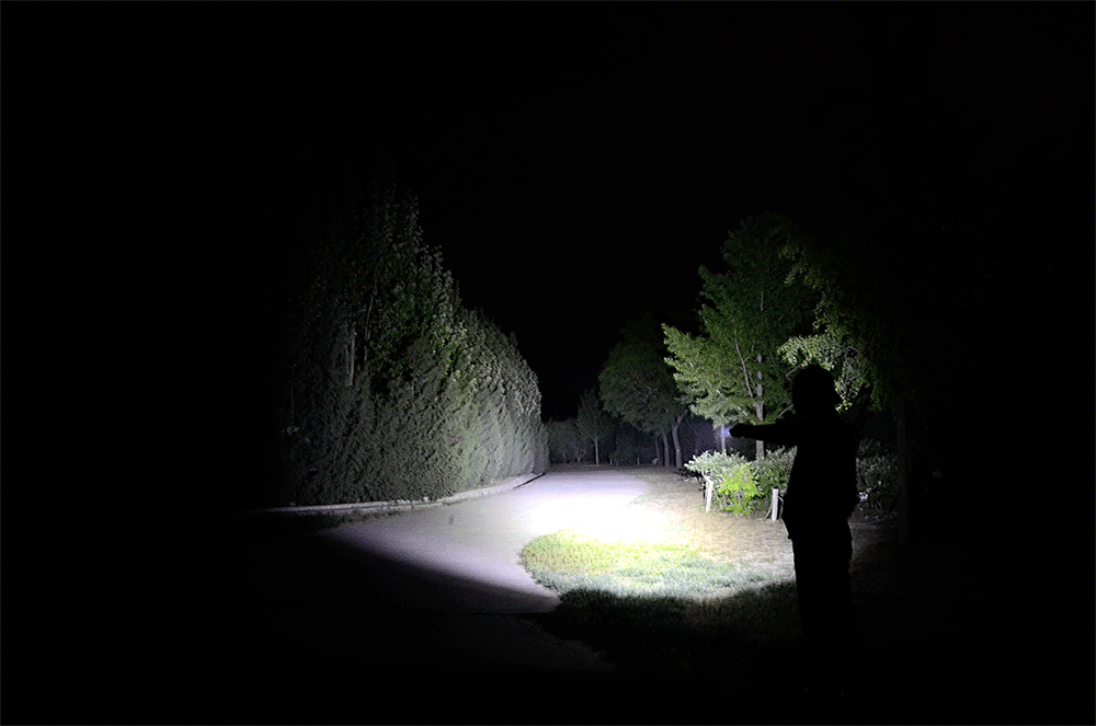 Tuy nhiên, ở ngoài trời vào buổi đêm thì các nấc sang cao sẽ phát huy hiệu quả sử dụng. Bởi vì chóa khá sâu, ánh sáng chính (quầng hotspot) của đèn tương đối thẳng, góc mở ánh sáng khoảng 5 độ, phân tán nhẹ ra xung quanh. Độ chói của ánh sáng ngay sau khi phát ra từ chóa là rất rất mạnh, và do đó ánh sáng cũng chiếu xa hơn. Quầng ngoài có góc chiếu khoảng 70 độ, nhìn lên ảnh khá là khó phân biệt vì ảnh ko thể hiện được hết.