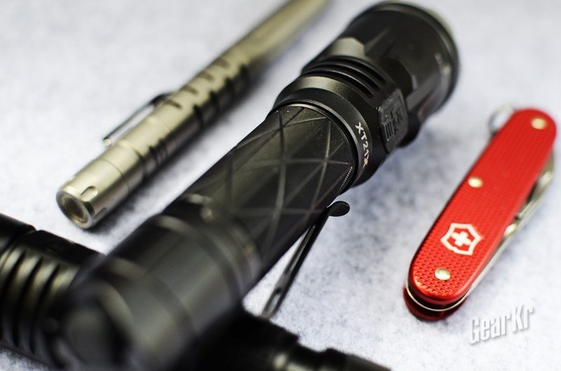 Thân đèn XT21X được gia công đường vân chống trượt với mẫu hoàn toàn mới, với hình thoi, và các vân sần nhỏ tinh tế được gia công tròn song song đồng tâm với trục của đèn. Các vân lớn tạo hình kim cương (hình thoi) có tác dụng tản nhiệt và làm thông thoáng tay cẩm, trong khi các vân tròn đồng trục có tác dụng chống trượt, tăng ma sát cho tay cầm đèn. Theo như hiểu biết của tôi, đây là cây đèn đầu tiên sử dụng loại vân này.
