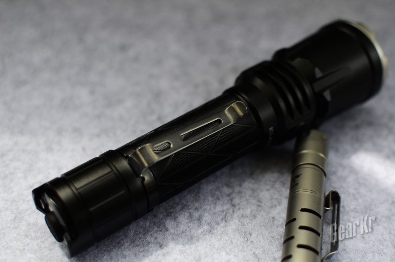 Các lá tản nhiệt hai bên công tắc là đặc điểm thiết kế truyền thống của các cây đèn XT của Klarus. 3 rãnh và 4 lớp được bố trí đều và đối xứng hai bên công tắc bên và cổng sạc, tăng diện tích tiếp xúc với không khí, tăng hiệu quả tản nhiệt – một yếu tố rất quan trọng đối với các đèn pin công suất lớn.