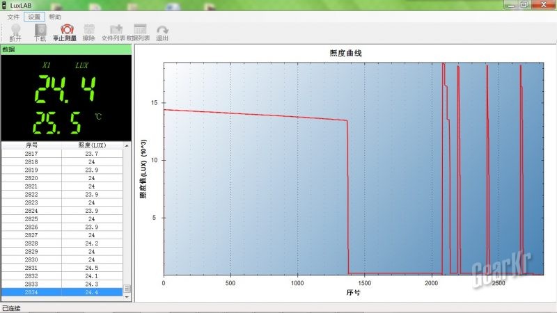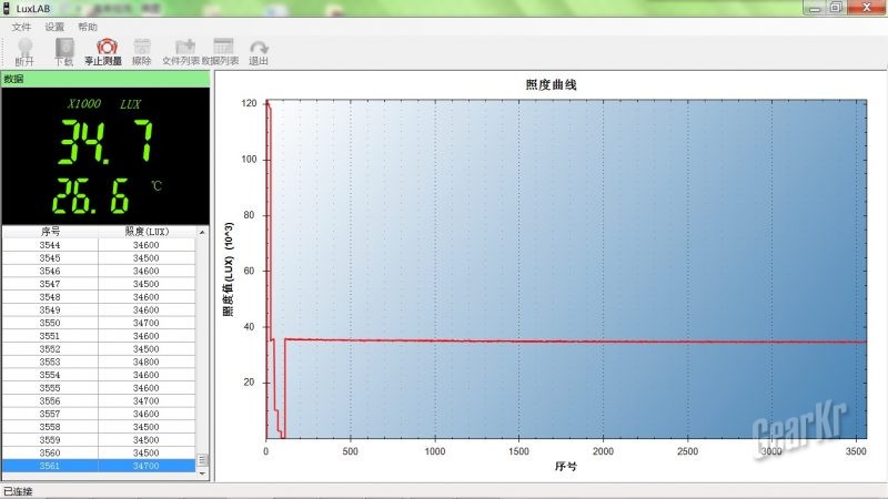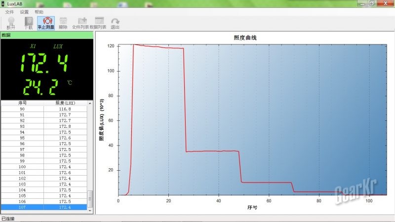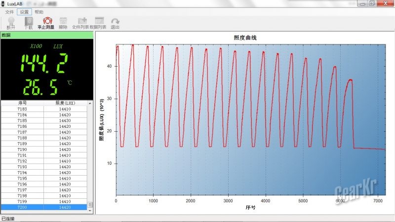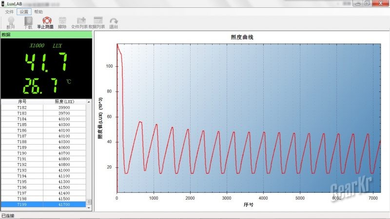 Sử dụng máy đo độ rọi chuyên nghiệp, tôi đặt đầu đèn cách máy đo khoảng 40cm, và máy tính kết nối tự động ghi lại dữ liệu. Sạc đầy pin, bật đèn ở nấc sáng nhất, và bắt đầu quá trình test