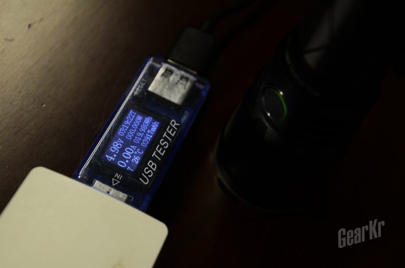 Sau khoảng 2 giờ 10 phút, độ sáng của đèn pin lại một lần nữa giảm mạnh, lần này độ rọi đo được chỉ còn 180 lux, tương đương với nấc sáng thấp nhất. Đèn báo pin trên công tắc bên bắt đầu nháy đỏ, báo hiệu pin sắp hết. Sau đó tôi đã nhanh chóng tắt đèn , và mặc dù tôi có thể bật đèn ở nấc sáng cao hơn, tuy nhiên nó không thể duy trì được lâu, độ sáng ngay lập tức lại giảm xuống nấc thấp nhất. Sau vài lần thử, tôi đã dừng quá trình test. Thời gian chiếu sáng đo được là khoảng 2 giờ 20 phút.