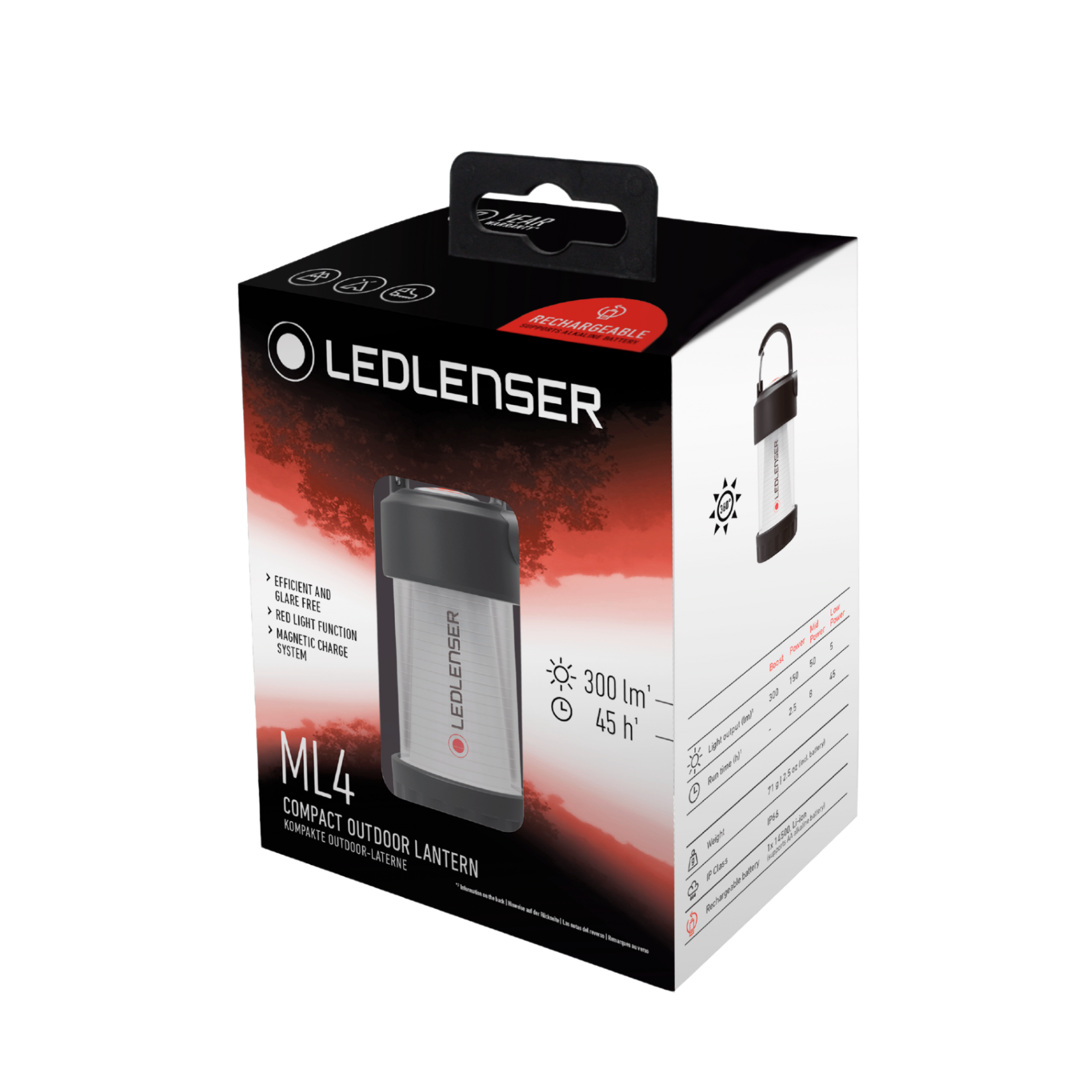 Đèn pin ngoài trời siêu gọn nhẹ Ledlenser ML4 được thiết kế cực kỳ nhỏ phát ra ánh sáng vàng nhẹ nhàng tạo bầu không khí ấm cúng. Được tích hợp công nghệ Micro-prism tân tiến nhất, ML4 cho bạn một nguồn sáng hiệu quả, tập trung và không loá. Ledlenser ML4 sử dụng công nghệ nguồn điện kép cho phép đèn ML4 hoạt động bằng pin sạc đi kèm hoặc pin AA tiêu chuẩn. Móc khoá carabiner giúp bạn sử dụng đèn một cách tiện lợi và linh hoạt hơn; ví dụ, bạn có thể treo đèn vào dây đeo balo, treo vào lều hoặc treo vào xe đạp để đảm bảo rằng Ledlenser ML4 luôn ở đó khi bạn cần tới nó.