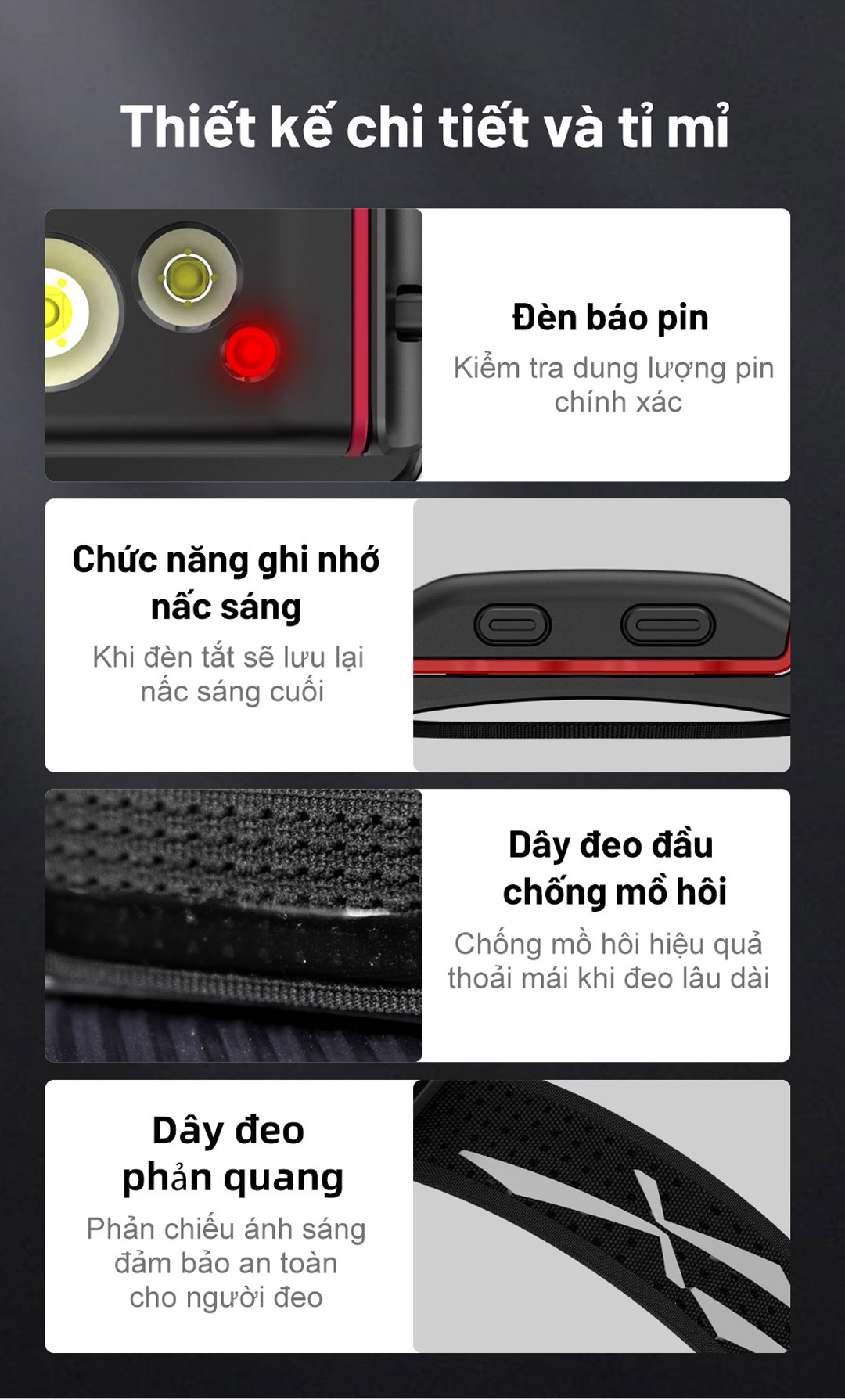 Với trọng lượng siêu nhẹ chỉ 90g (đã bao gồm pin) với độ sáng tối đa 800 lumens, tầm chiếu xa 103m trang bị 1 hộp pin và pin LB19 cho thời gian sử dụng đèn lên tới 80 giờ hoặc có thể sử dụng 3 viên pin AAA để sử dụng người dùng cũng có thể sử dụng sạc dự phòng để làm nguồn cho đèn pin. Sở hữu ánh sáng 3 màu Trắng, vàng, đỏ giúp cho đèn trở lên đa dụng hơn, phù hợp cho các công việc, chạy bộ, sửa chữa , câu cá, hoạt động ngoài trời.vv