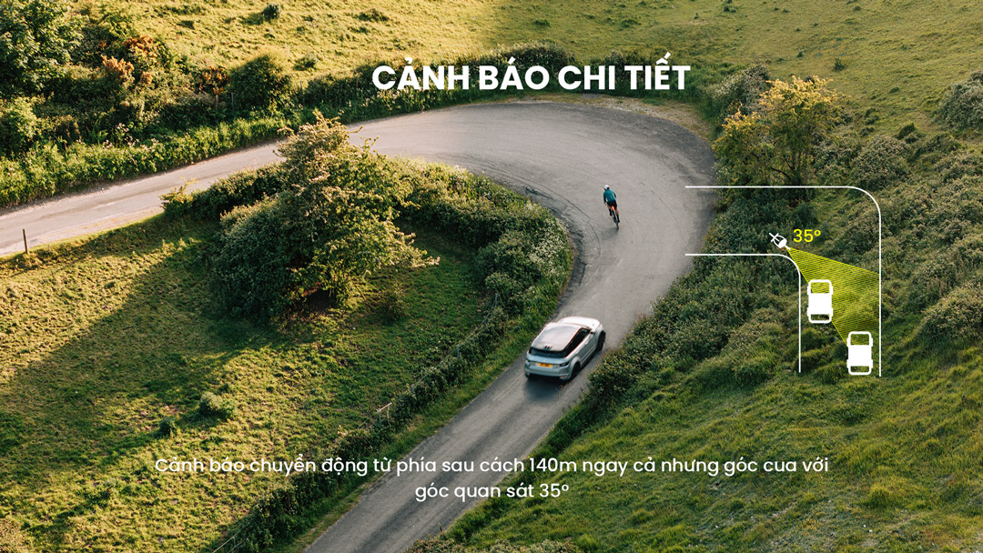 Cảnh báo chi tiết trong khoảng cách 140m và góc cua 35 độ