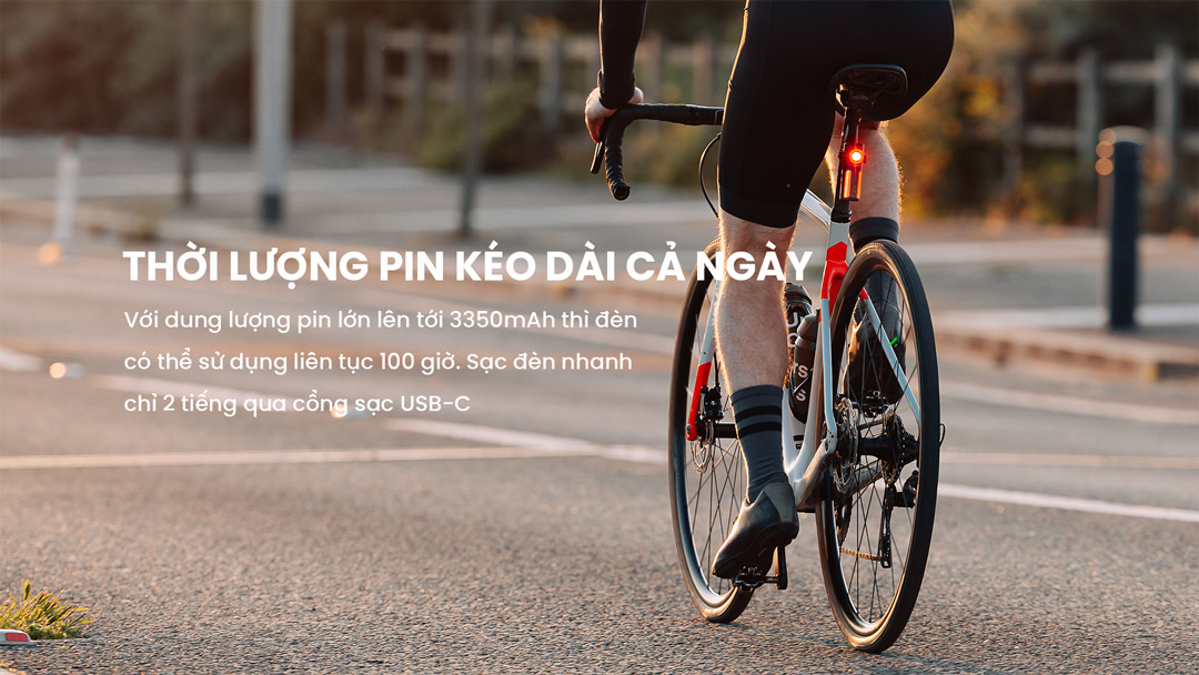 Khi đèn hậu được bật, nhấn nút nguồn để chuyển qua các chế độ: Thấp → Cao → Nhấp nháy ban đêm → Nhấp nháy ban ngày → Tiết kiệm → Thấp…