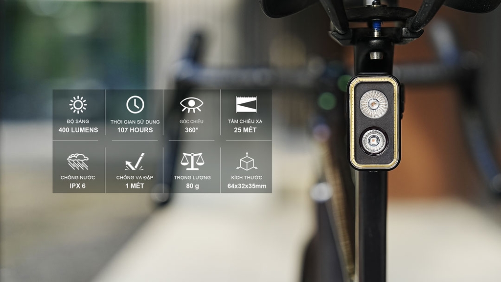 | Tính năng đặc biệt | Cảm biến chuyển động cho đạp xe, đèn sáng khi xe phanh |