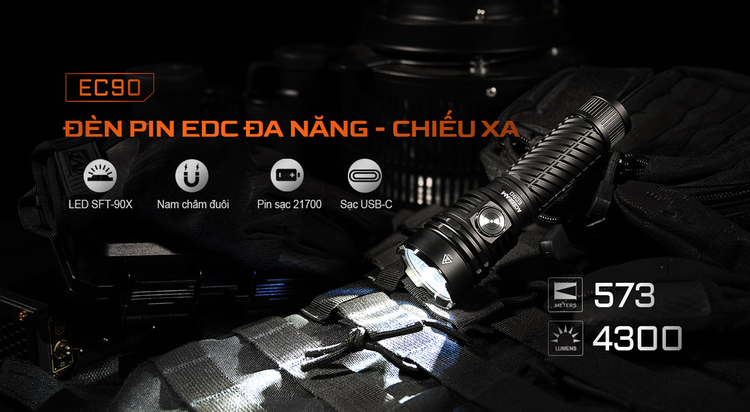 EC90 hỗ trợ sạc USB-C tiện lợi và có thể thay pin để kéo dài thời gian dùng ngay lập tức. Đèn báo pin thông minh nhắc sạc kịp thời. Clip gài 2 chiều cho phép gắn dọc hoặc ngang linh hoạt theo setup EDC của bạn. Vỏ nhôm cứng cáp đạt IP68 (chống bụi/nước) và chống rơi 1,5m, sẵn sàng cho môi trường khắc nghiệt.