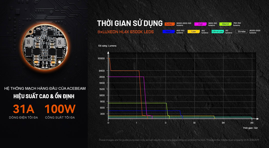 8 LED LUXEON HL4X: 10.000 lumens – chiếu xa 440m