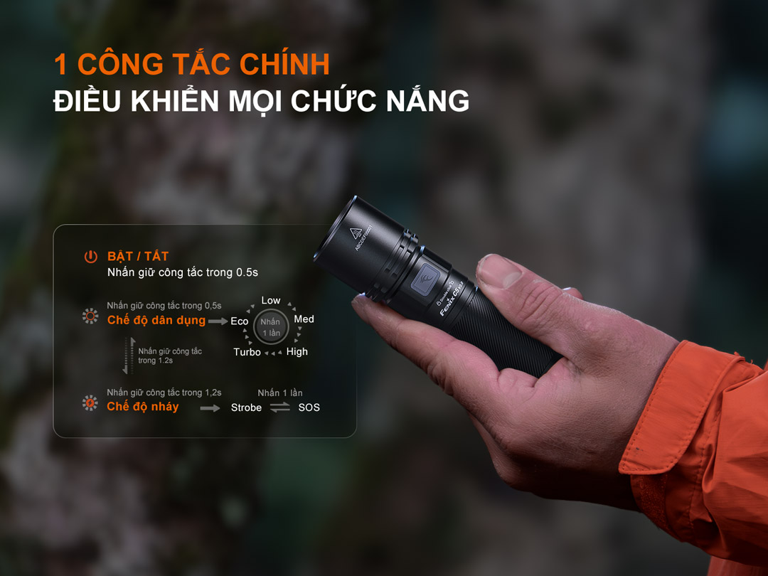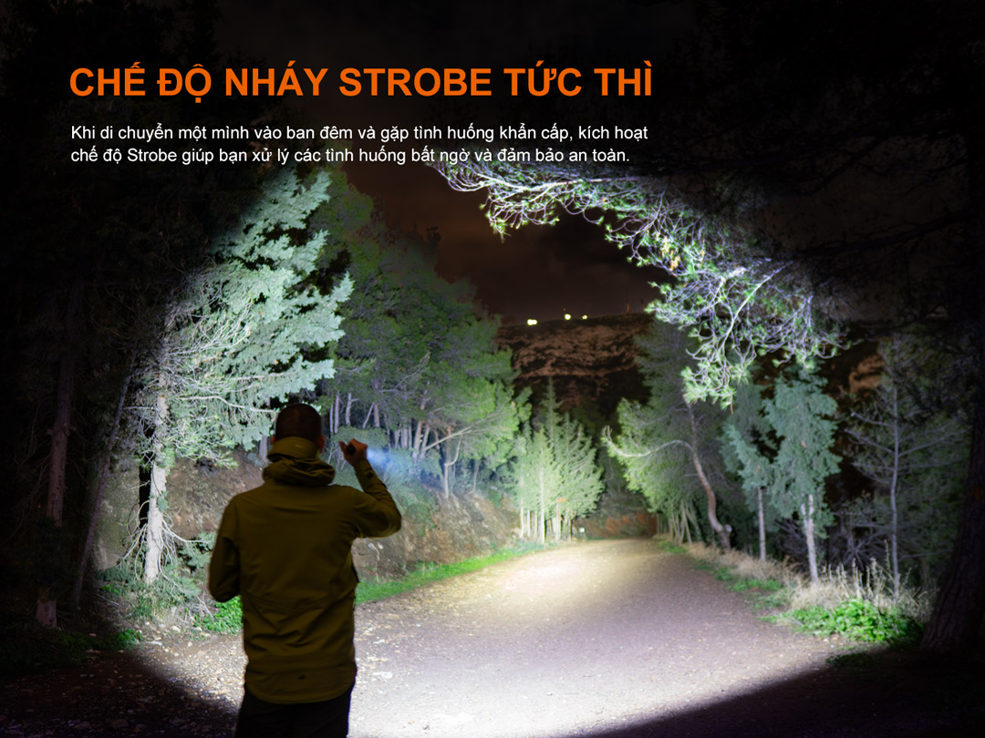 Trong chế độ này, bấm 1 lần để chuyển giữa Strobe và SOS.