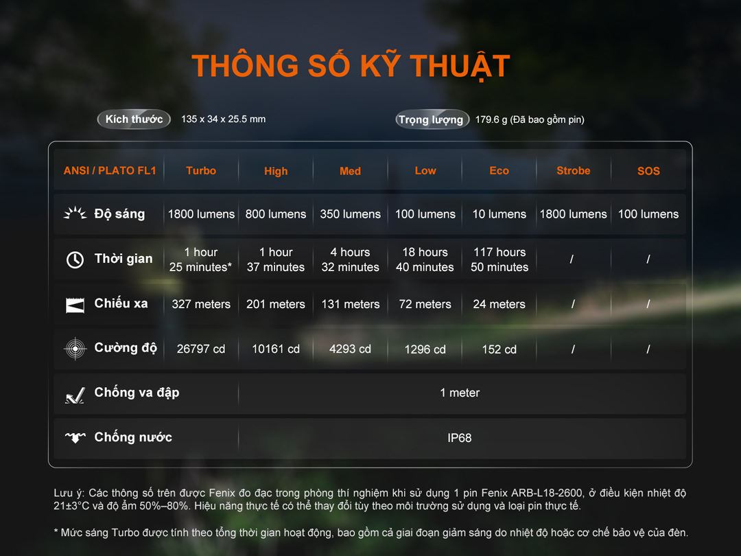 | Độ sáng | 1800 Lumens |