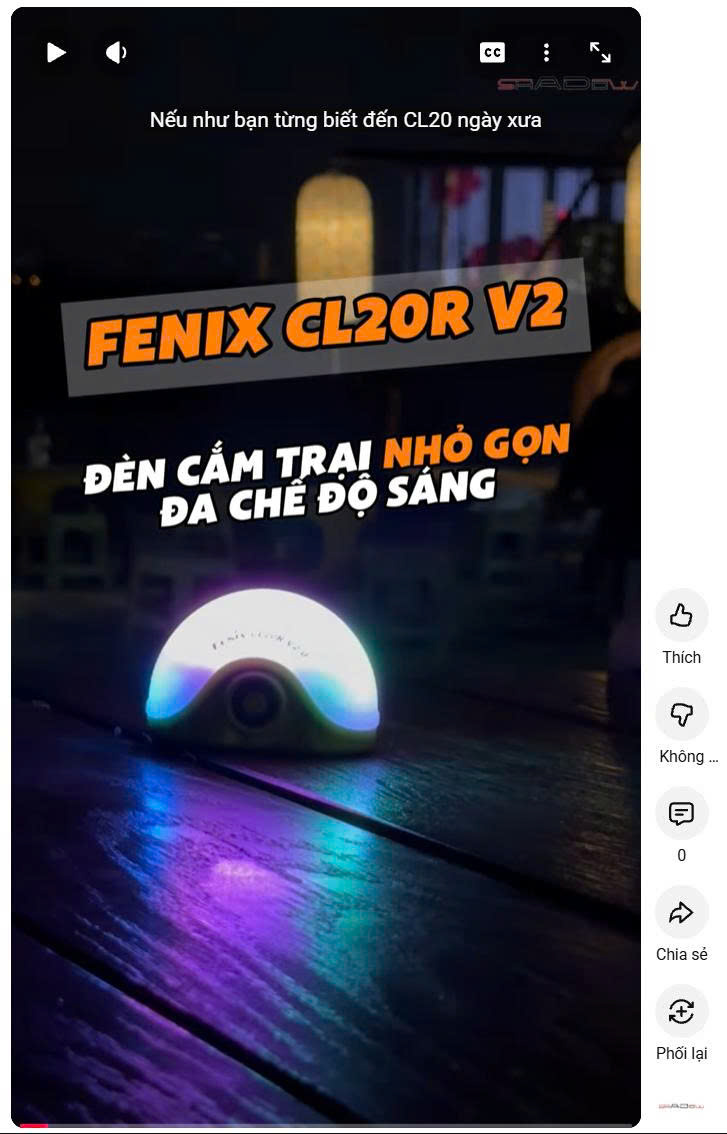 Fenix CL20R V2.0 là phiên bản đèn cắm trại mini thế hệ mới của Fenix, được thiết kế siêu nhỏ gọn, nhẹ, bền bỉ và cực kỳ linh hoạt, phù hợp cho cắm trại, leo núi, dã ngoại, câu cá hoặc sử dụng trong gia đình. Đèn mang đến ánh sáng 300 Lumens - khuếch tán đều, dịu mắt, đồng thời tích hợp đa chế độ chiếu sáng RGB sinh động để tạo không gian ấm áp, thư giãn hoặc trang trí.