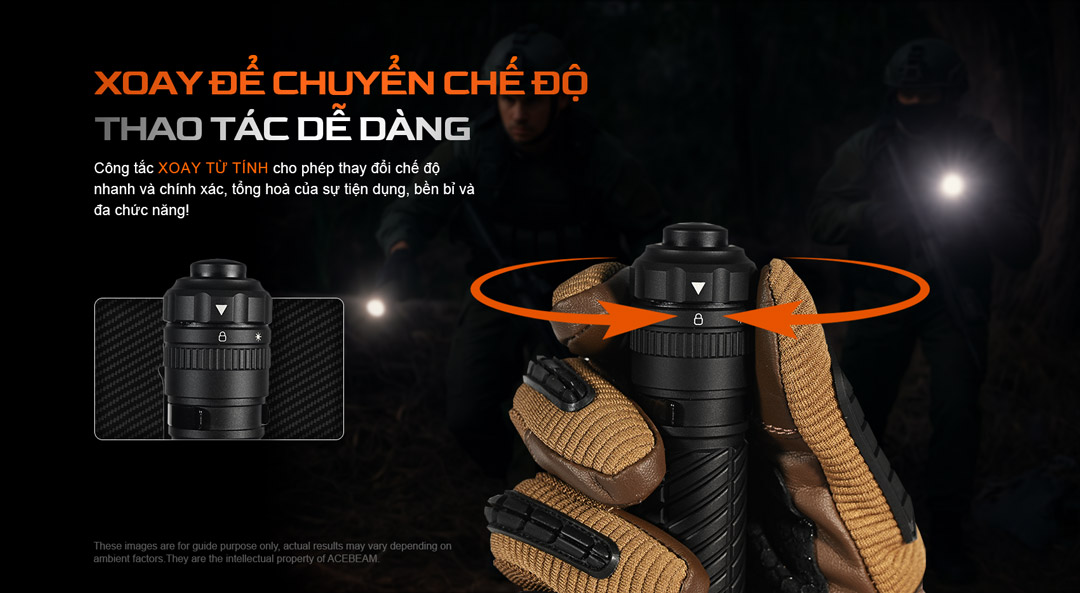 Xoay công tắc từ tính ở đuôi đèn để chọn các chế độ: