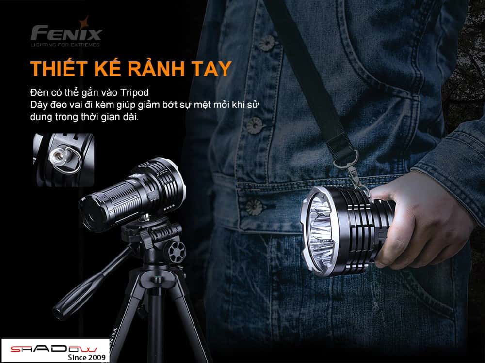 Đèn có hỗ trợ cài quai cầm tay hoặc gắn giá đỡ 3 chân tripod phục vụ cho các hoạt động quay chụp.
