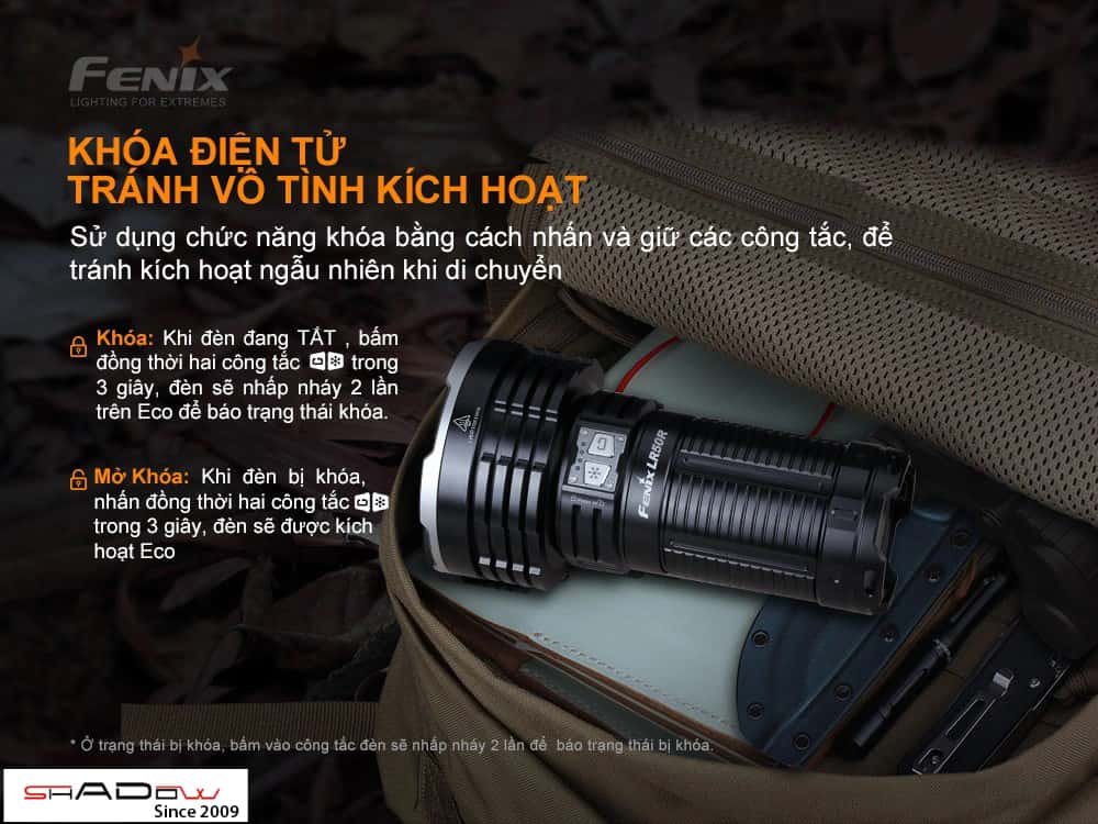Đèn có chức năng khóa, tránh vô tình làm kích hoạt đèn.