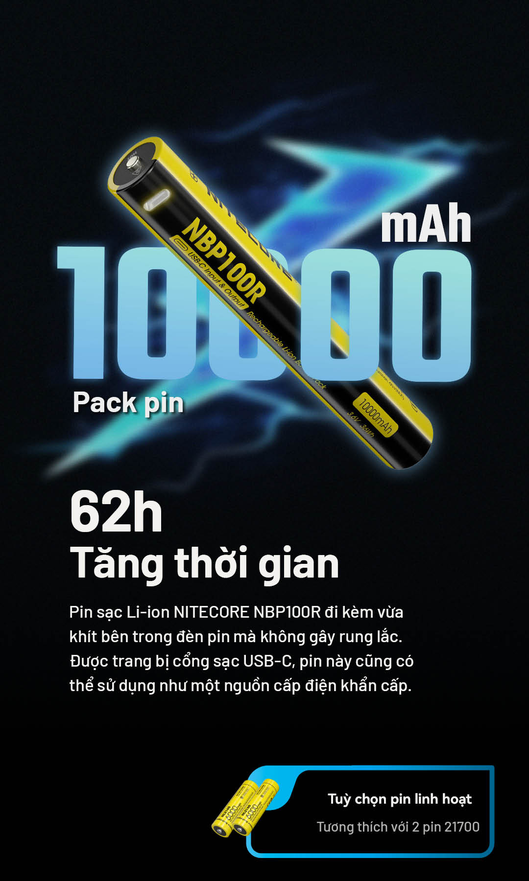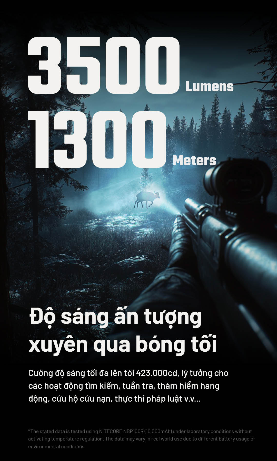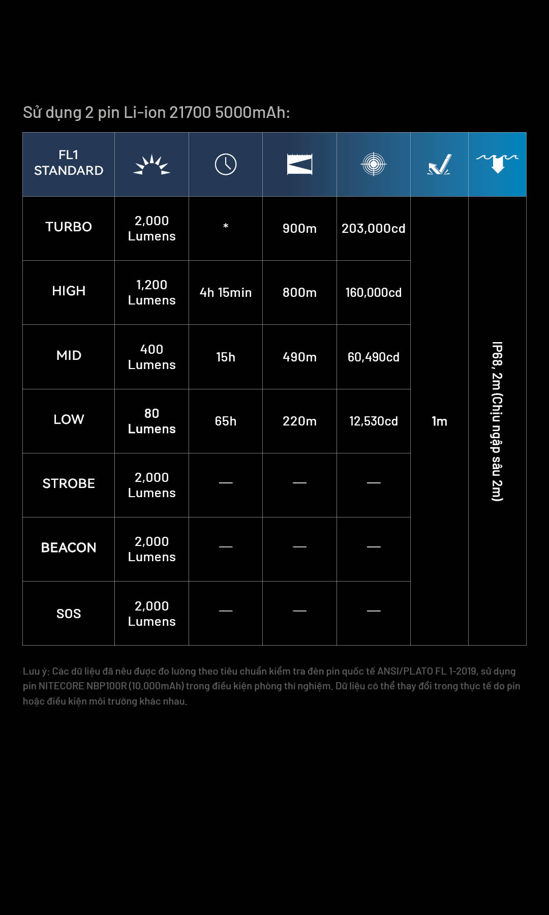 | Vật liệu | Thân đèn làm từ hợp kim nhôm hàng không, hoàn thiện anodized cấp quân sự HA III. |