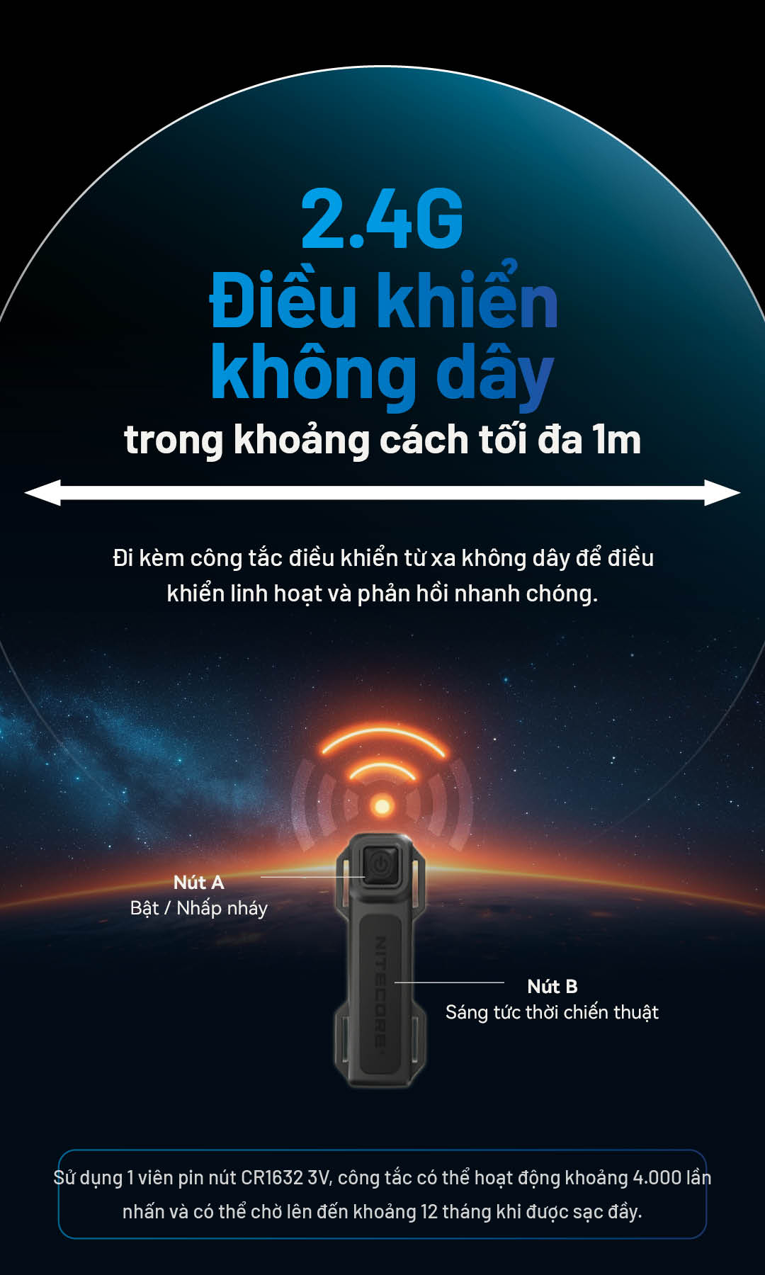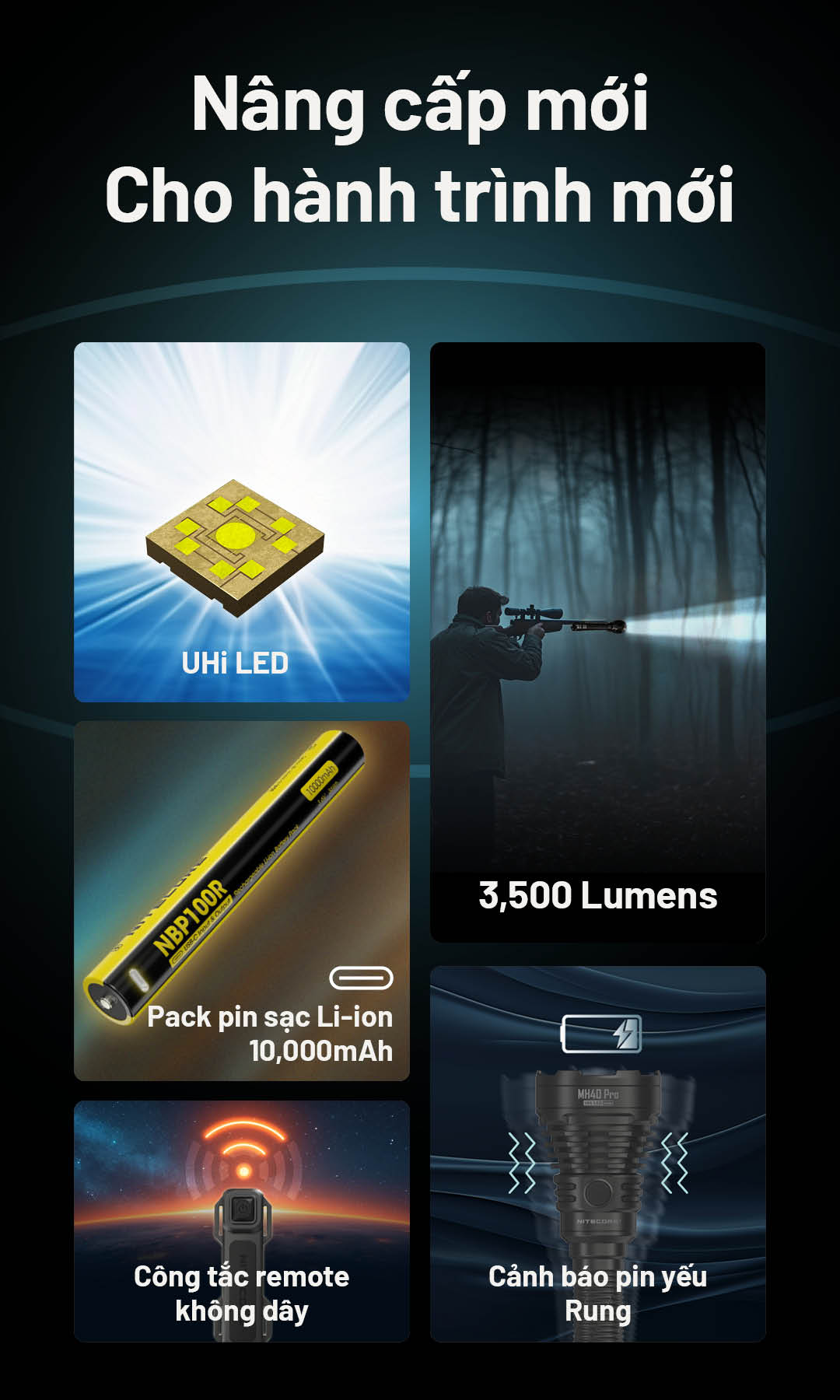 Nitecore MH40 Pro là đèn pin chiếu xa mạnh mẽ, được trang bị LED UHi 40 MAX tiên tiến được phát triển bởi của NiteLab, cho độ sáng mạnh mẽ 3500 lumen và tầm chiếu xa siêu xa 1300m. Điểm đặc biệt của cây đèn này là công remote không dây độc đáo, có thể gắn bất kỳ đâu, thao tác mọi chức năng của đèn. Đây là mẫu đèn lý tưởng cho các hoạt động ngoài trời, tìm kiếm cứu hộ hoặc nhiệm vụ chiến thuật chuyên nghiệp.