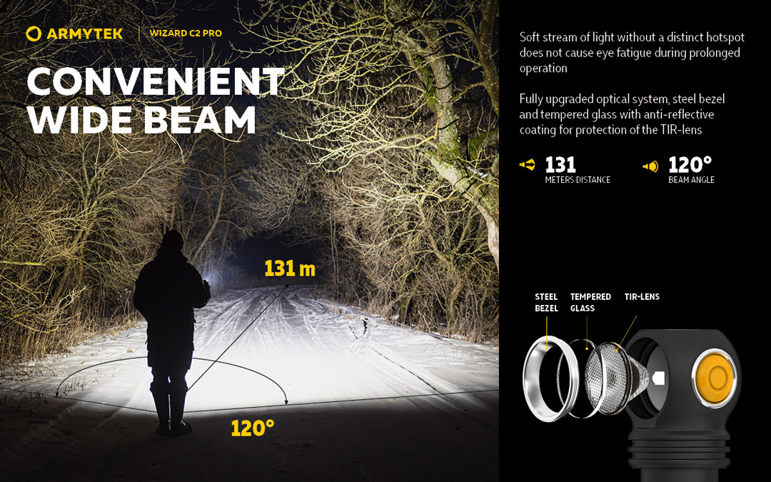 Đèn gù Armytek C2 pro có độ sáng 2500 lumens chiếu xa 131m