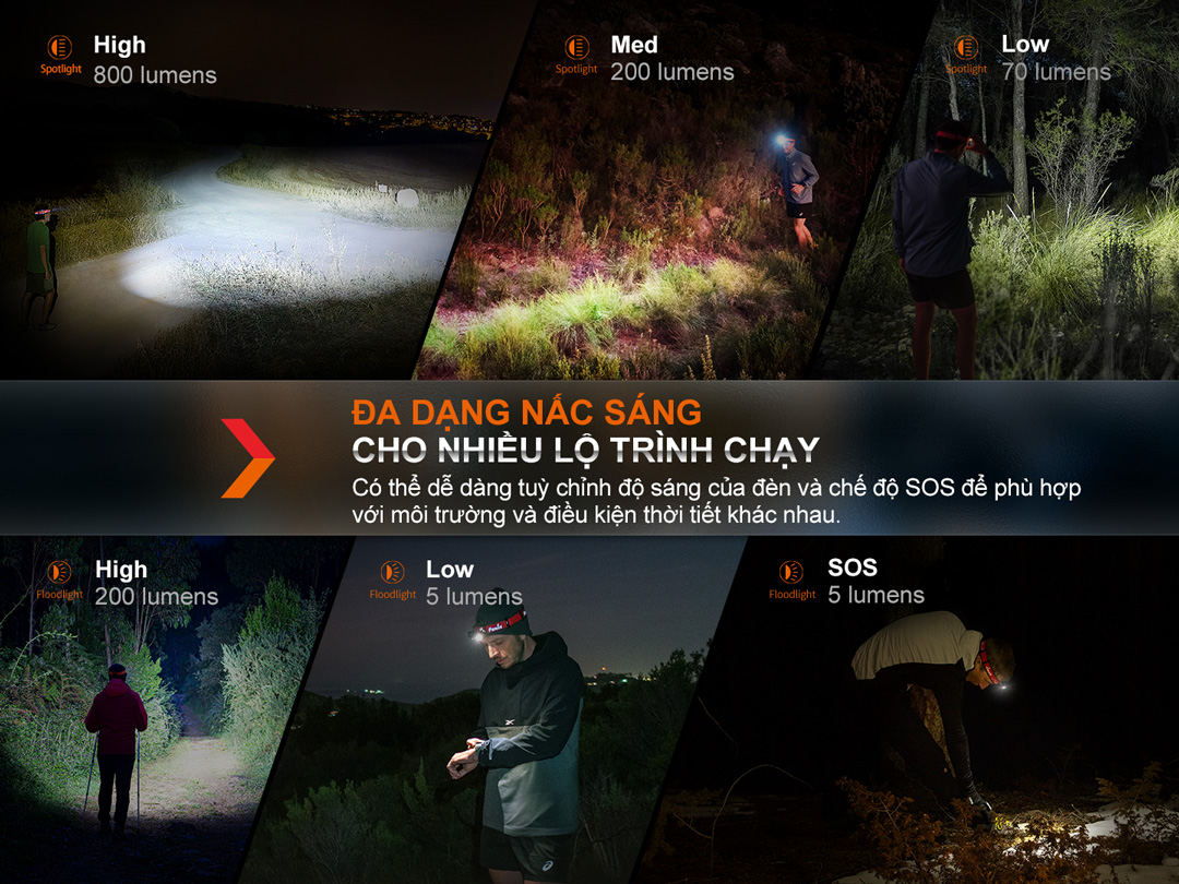 Chế độ chiếu tỏa: Nhấp một lần vào công tắc để chuyển sang các nấc sáng: Thấp → SOS.