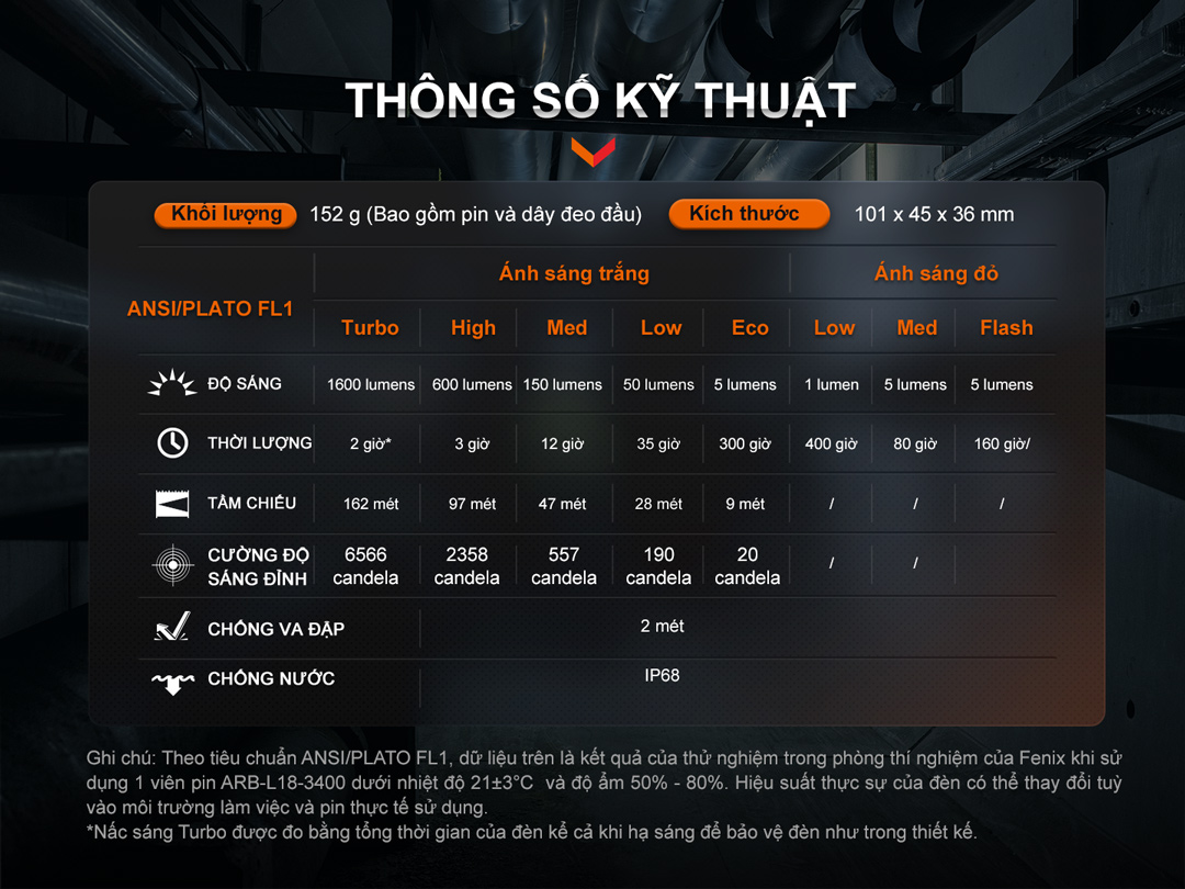 | Trọng lượng | 152 grams (kèm pin + dây đeo đầu) |