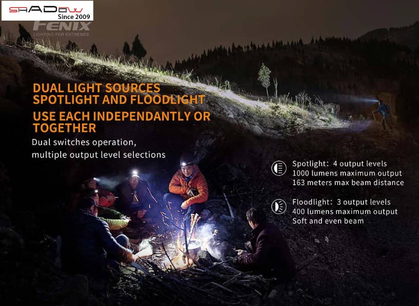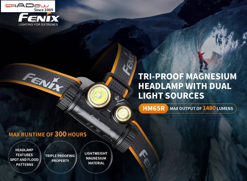 Fenix HM65R với độ hai bóng đèn có tổng độ sáng tối đa 1400 lumen giúp tầm chiếu xa lên tới 163m (theo tiêu chuẩn quốc tế về đèn pin (ANSI PLATO FL1).
