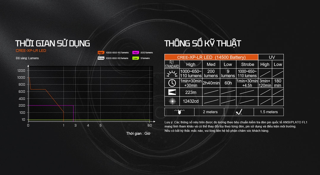 Biểu đồ thời gian chiếu sáng và thông số kỹ thuật ACEBEAM K1