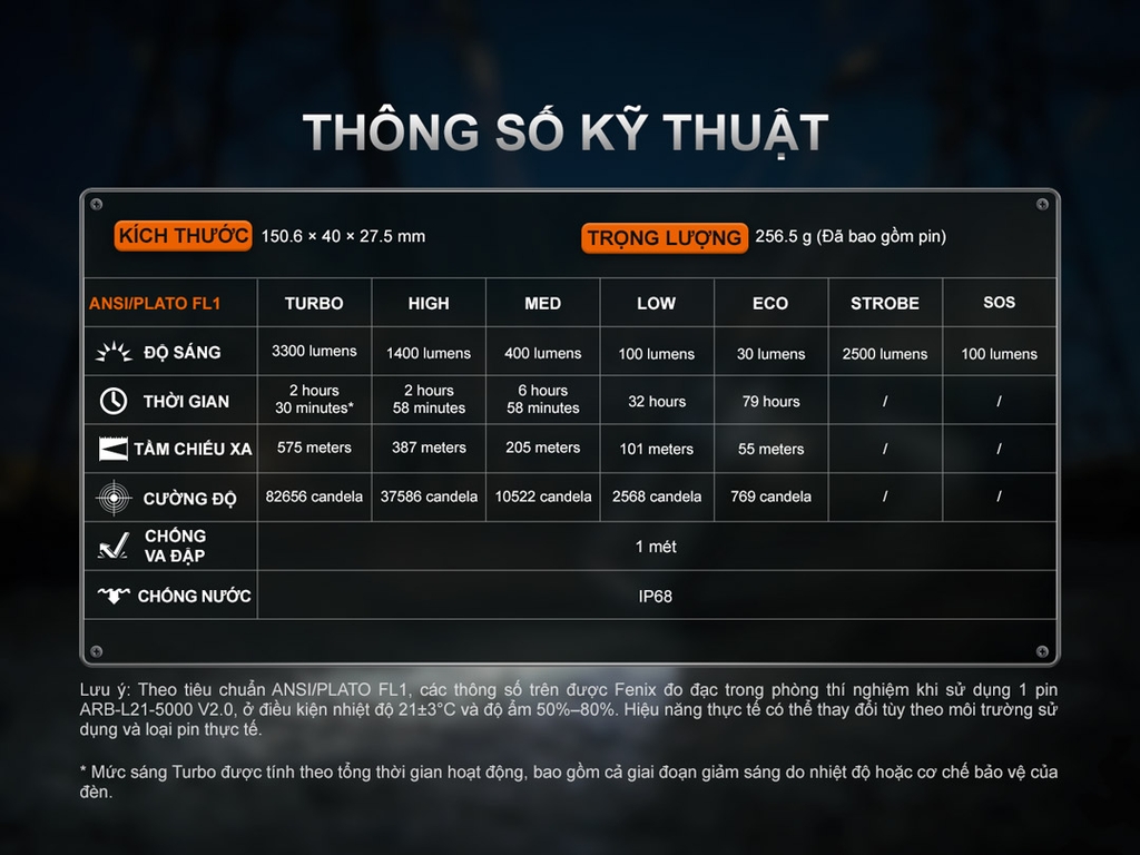 | Bảo hành | 05 năm đèn, 01 năm pin |