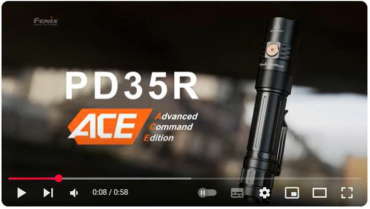 video giới thiệu đèn pin Fenix PD35R ACE Advanced Command Edition độ sáng 2000 lumen, thiết kế chiến thuật chuyên nghiệp, đèn pin Fenix cao cấp
