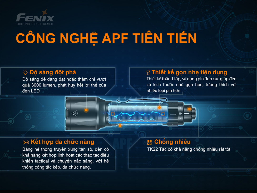 Công nghệ APF: Giúp giảm nhiễu và tối ưu hiệu suất chiếu sáng.