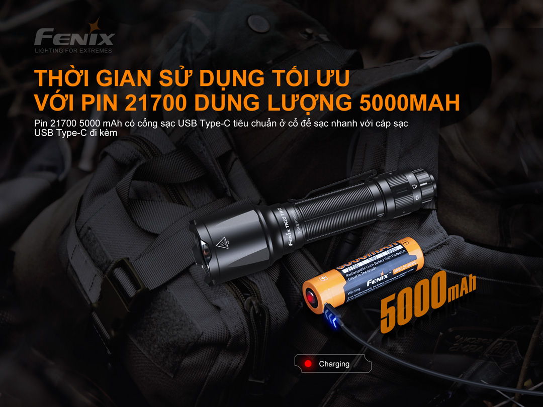 Phụ kiện: Đặt mua thêm Pin sạc Fenix 21700 dung lượng 5000mAh tích hợp cổng sạc cho Fenix TK22TAC tại ĐÂY