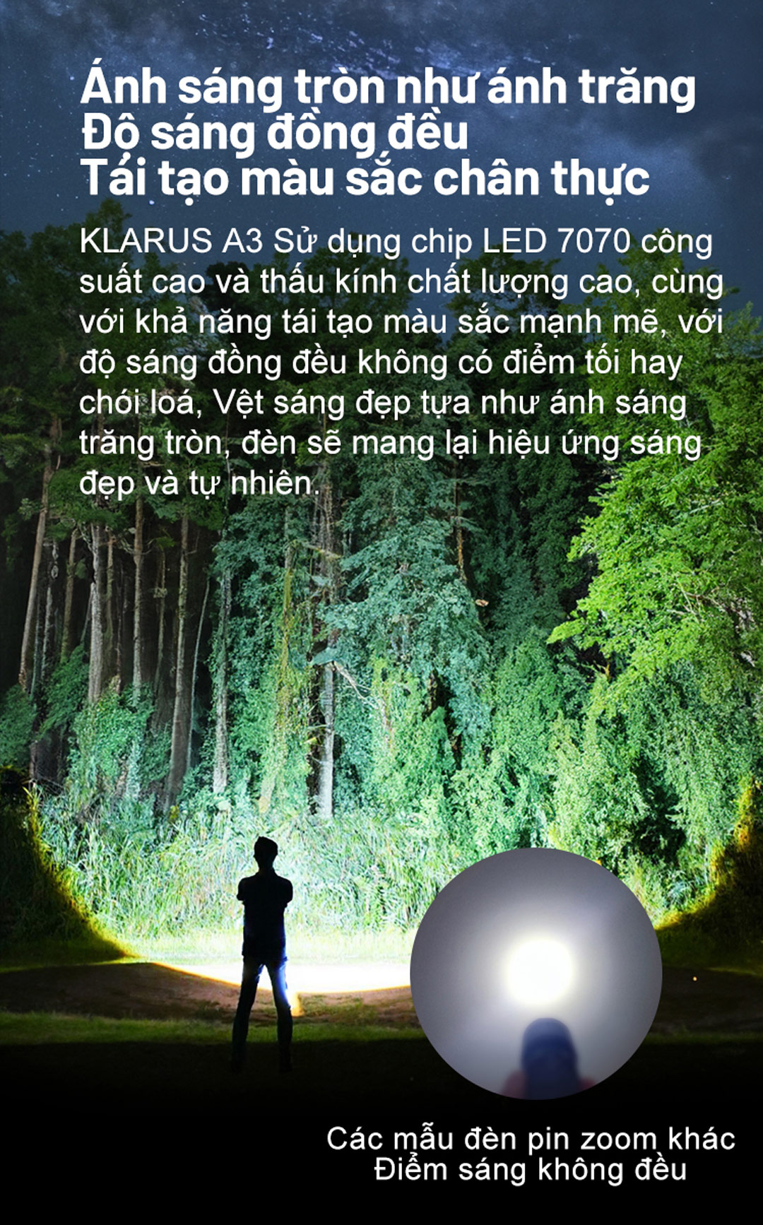 So sánh ánh sáng của đèn pin zoom Klarus A3 và Klarus A2 Pro
