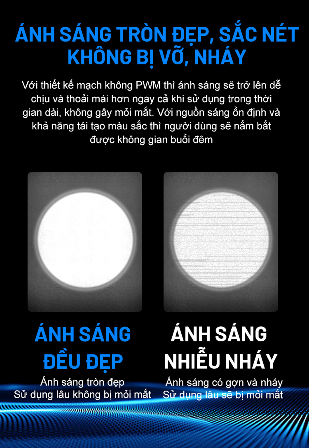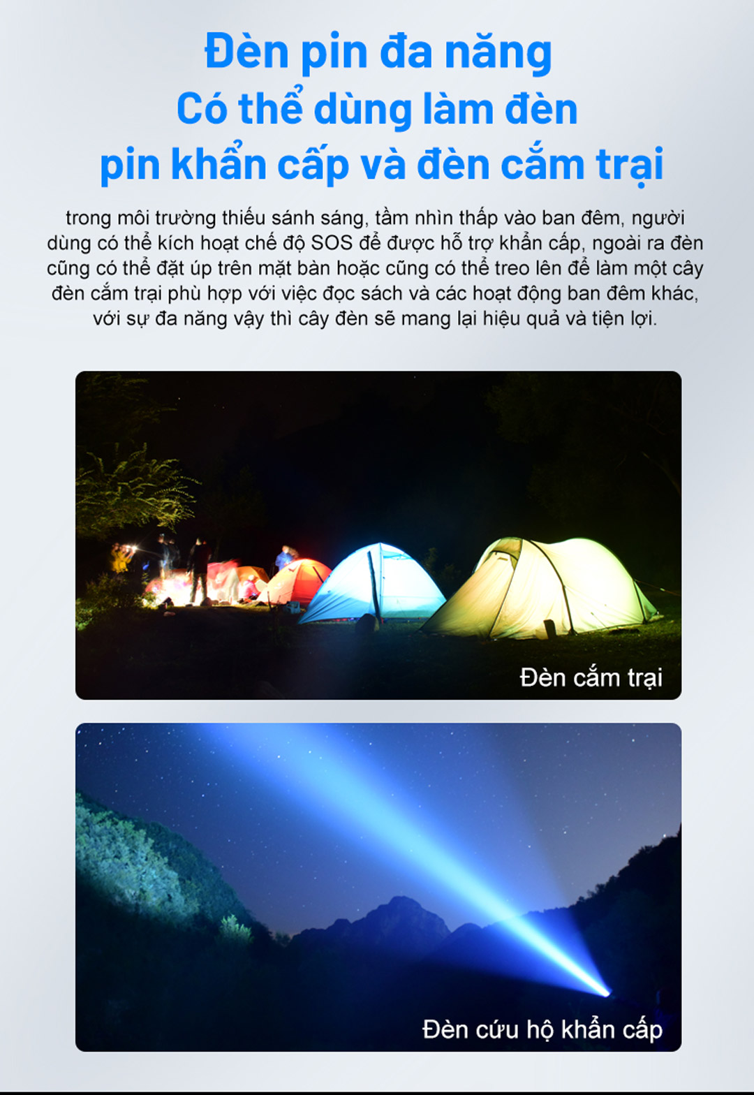 - Chỉ sạc đèn với dây sạc trang bị kèm theo đèn.