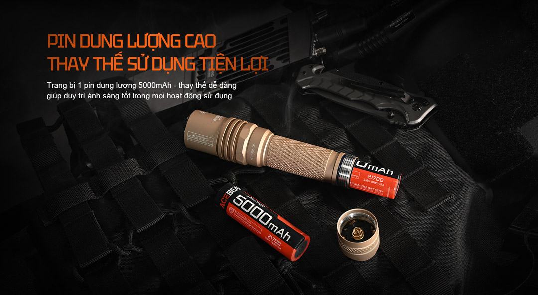 | Pin | 1 pin Acebeam 21700 dung lượng 5000 mAh |