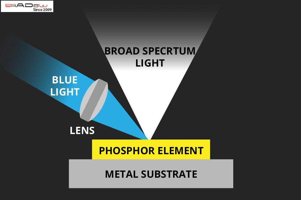 Quá trình tạo ra ánh sáng của công nghệ LEP (Laser Excited Phosphor) liên quan đến việc phát ra tia laser xanh qua một thấu kính hội tụ. Tia laze này chiếu vào một nguyên tố phốt pho được hỗ trợ bởi một chất nền kim loại, sau đó phản xạ và chuyển đổi chùm tia thành ánh sáng phổ rộng. Chùm sáng thu được là ánh sáng LEP có màu trắng sáng nổi bật và có khả năng chiếu xa được rất xa!