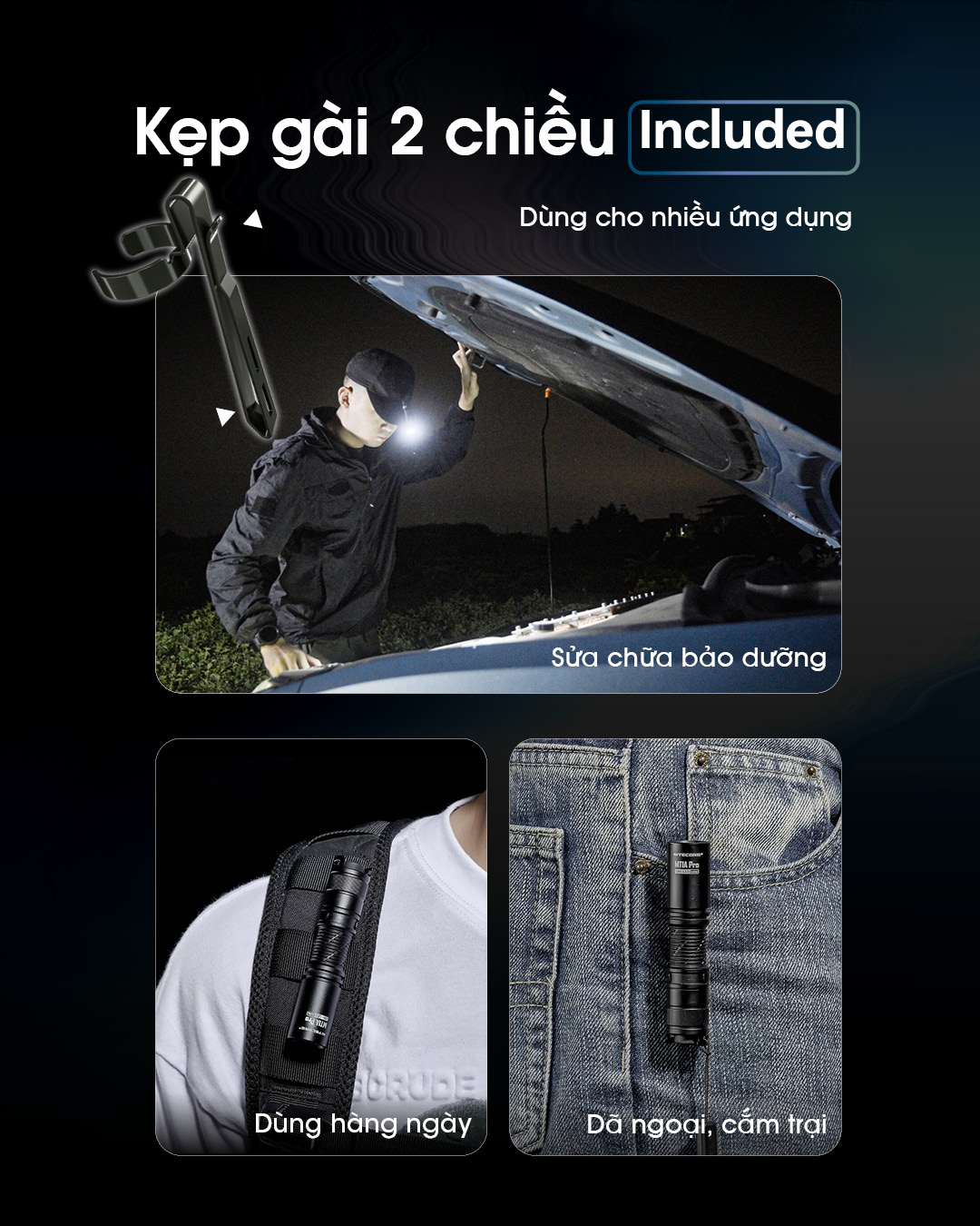 | Ứng dụng | Làm đèn bỏ túi, dã ngoại, sửa chữa, ... |