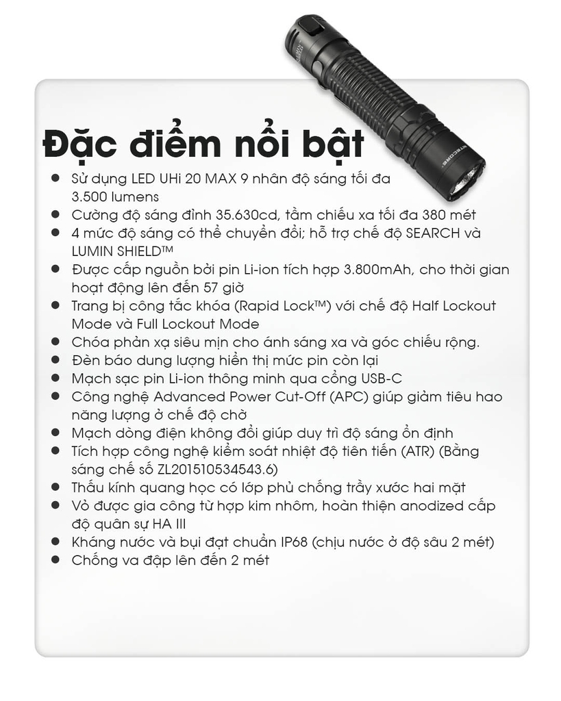 Nhiều tính năng nổi bật của đèn pin