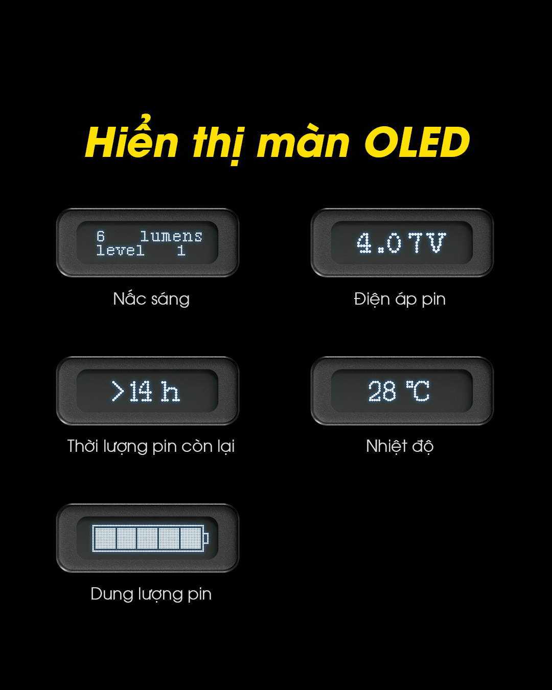 Trong đó, nấc sáng HIGH sẽ có độ sáng trong khoảng từ 400 - 2000 lumens (Mặc định 1000 lumens) - người dùng có thể tuỳ chỉnh cài đặt độ sáng High trong phạm vi bằng cách: