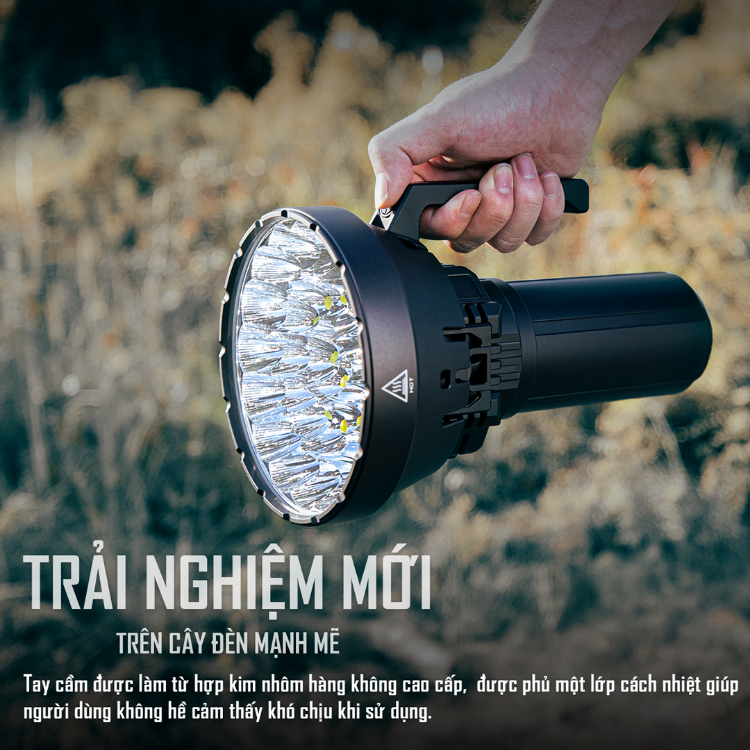 - Khi sử dụng ở những nấc sáng cao, đèn sẽ phát ra rất nhiều nhiệt, điều này là bình thường. Khi nhiệt độ bên trong thân đèn đạt 55 độ C, đèn sẽ tự hạ sáng xuống 40000 lumen để đảm bảo sự thoải mái cho người sử dụng, và khi nhiệt độ tăng đến 65 độ C, chế độ Turbo sẽ bị vô hiệu hoá để đảm bảo an toàn.