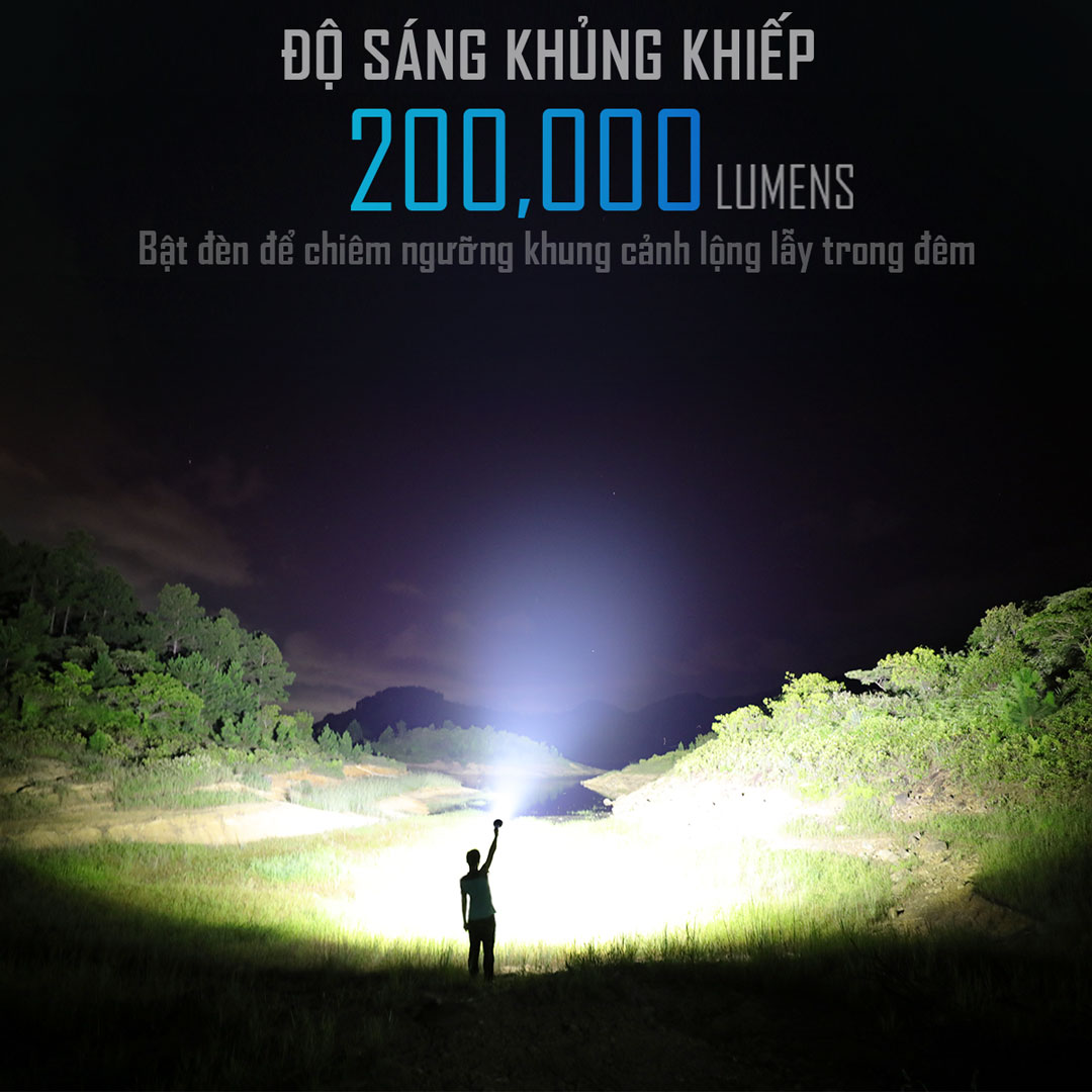- Độ sáng tối đa 200,000 lumens, chiếu xa tối đa 1618m
