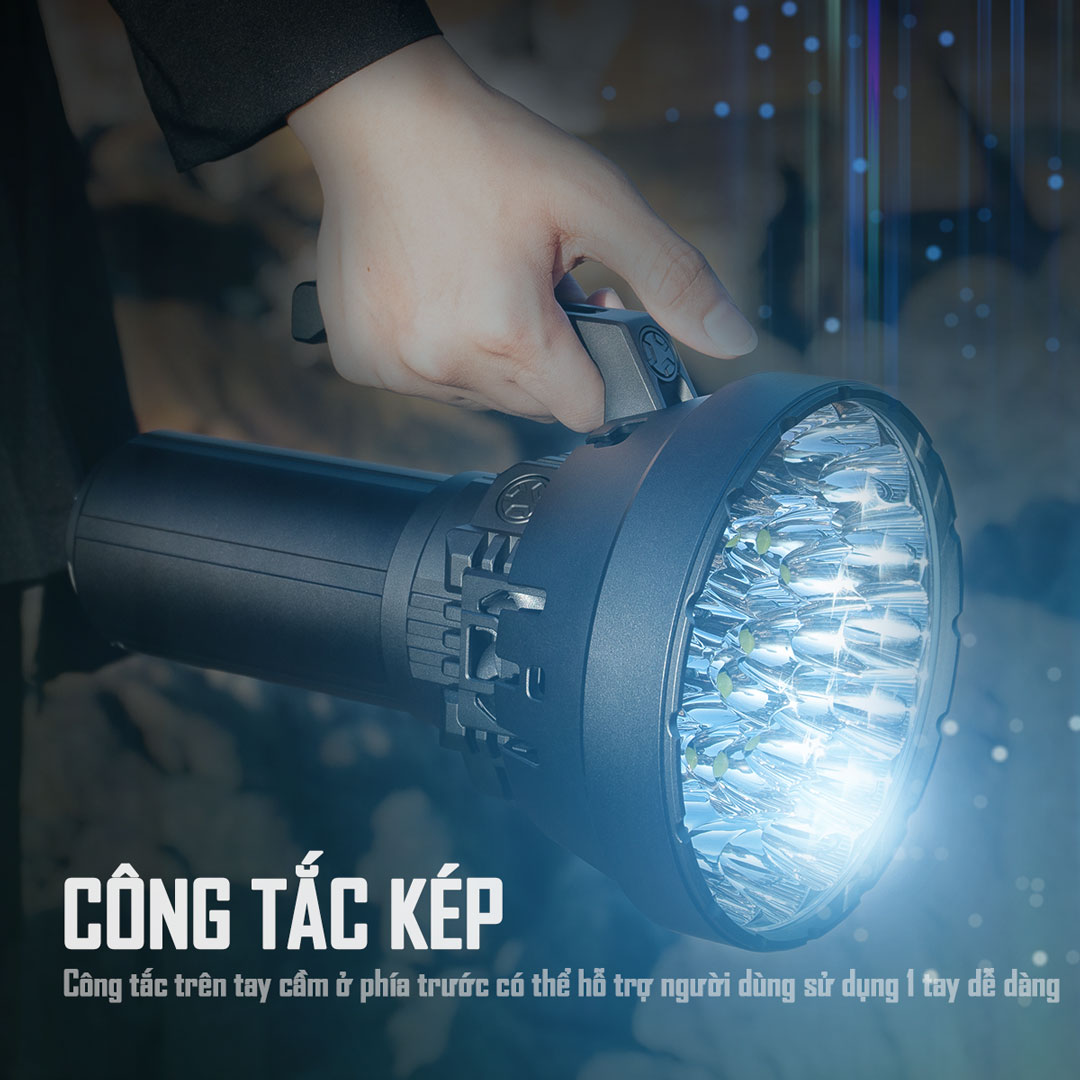- Công tắc kép ở cả trên thân đèn và phần tay cầm