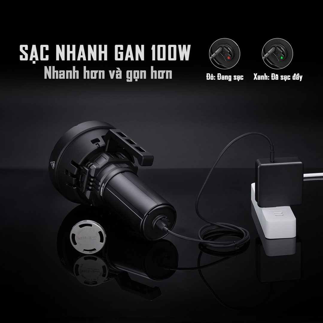 - IMALENT MS32 hỗ trợ sạc siêu nhanh PD100W qua cổng USB C hai chiều. Khi sạc đèn, cắm cáp sạc vào củ sạc, cắm củ sạc vào điện lưới để sạc. Quá trình sạc mất khoảng 2 giờ.