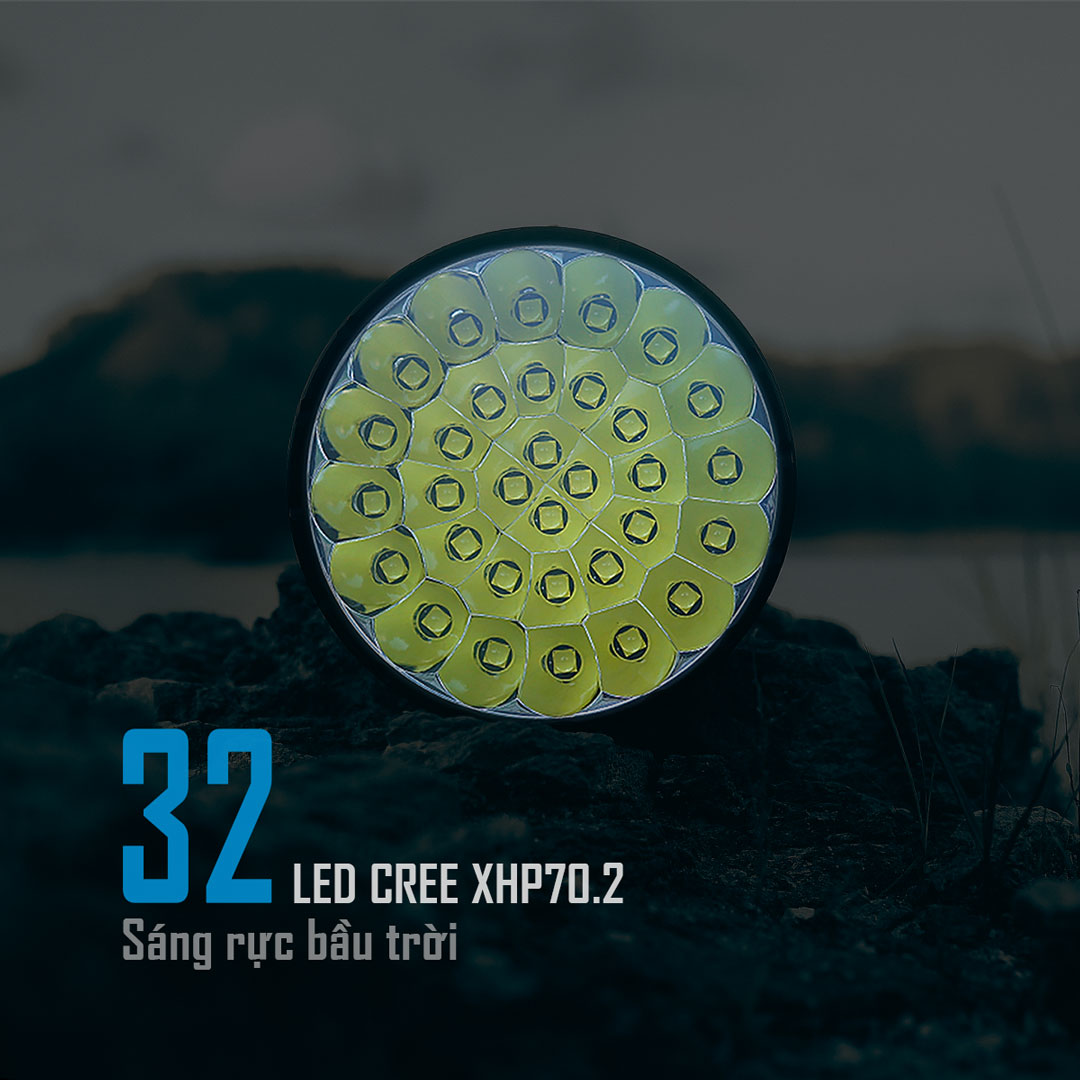 - Sử dụng 32 LED CREE XHP70.2, tuổi thọ lên tới 50,000 giờ