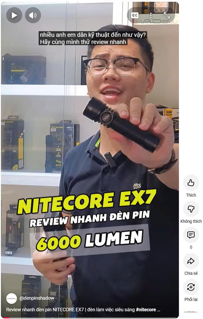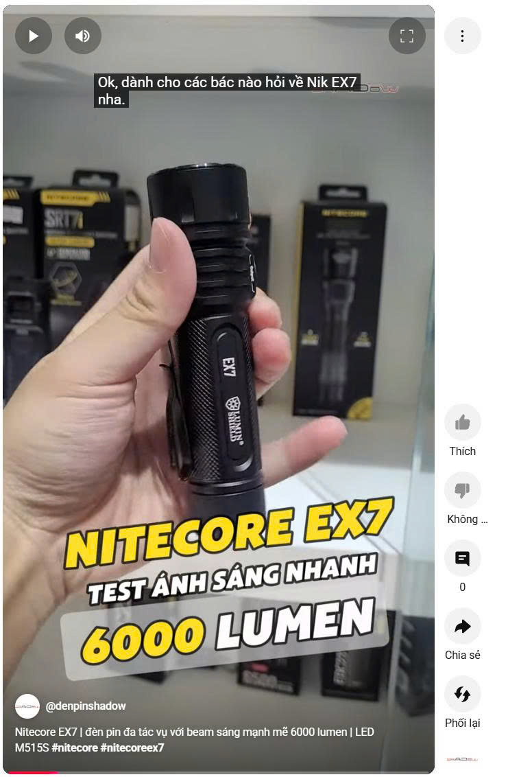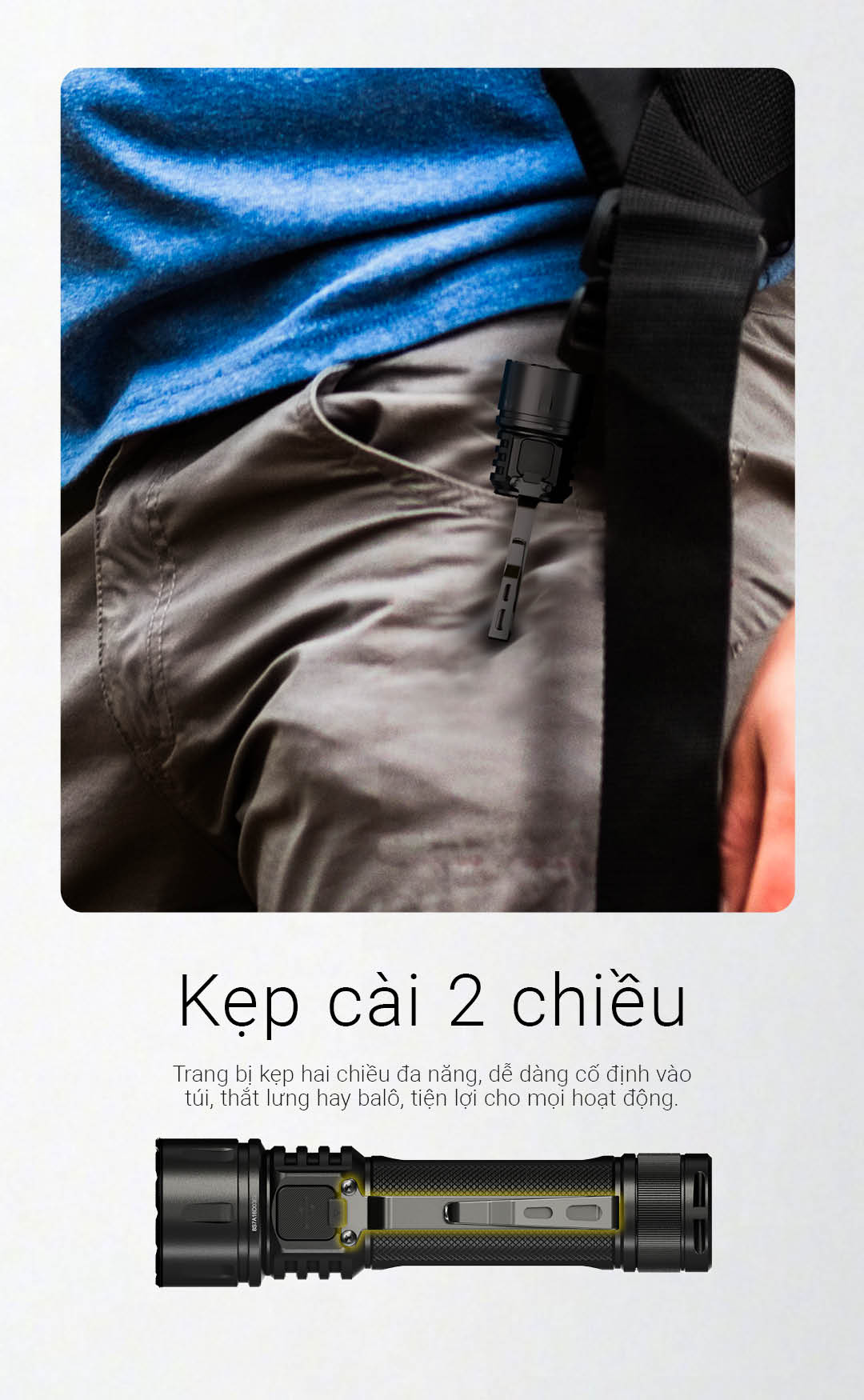 NITECORE EX7 là mẫu đèn pin cao cấp mới ra mắt ngày 4 tháng 9 năm 2025, được trang bị LED M515S đầu tiên trên thế giới, với thiết kế module LED hình chữ X đặc biệt giúp phân bổ công suất linh hoạt, tản nhiệt hiệu quả và điều khiển beam thật mượt. Với 20 lõi ánh sáng, EX7 đạt được độ sáng tối đa 6.000 lumen, tầm chiếu 500 mét, cùng nhiều chế độ chiếu: Chiếu xa, chiếu toả, chiếu cả xa và toả, cho phép tùy chỉnh mức sáng từ LOW, MID, HIGH đến TURBO. Hiệu suất ổn định và lâu dài mang lại trải nghiệm chiếu sáng đẳng cấp mới.