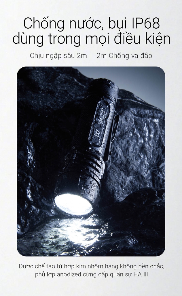 - Thân đèn làm bằng nhôm hàng không anodized HAIII
