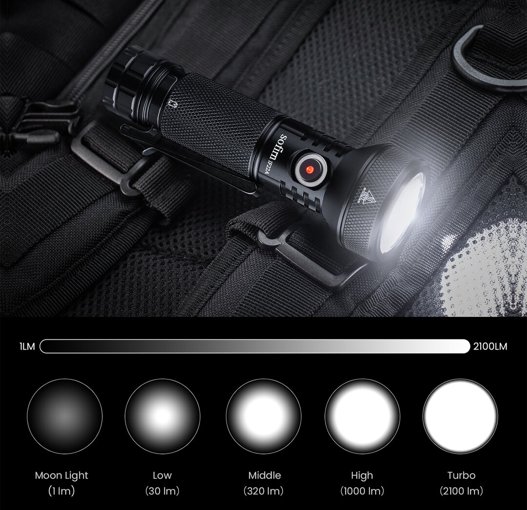 Đèn pin chiếu xa SOFIRN IF22A là cây đèn pin chiếu xa kích thước nhỏ gọn được thị trường tiêu dùng rất chuộng cho nhu cầu chiếu xa. Đèn trang bị LED Luminus SFT40 LED với độ sáng tối đa 2100 lumen có tầm chiếu xa lên tới gần 700m. Đèn sử dụng thấu kính cường lực TIR cao cấp cho ra ánh sáng mền mịn và cân bằng, là một trong những cây đèn đầu tiên của SOFIRN được trang bị thấu kính TIR. Pin đi kèm là loại pin sạc Sofirn 21700 dung lượng cao 4000mAh, đươc trang bị cổng sạc nhanh USB Type-C 3A, sạc rất nhanh và tiện dụng. Đèn phù hợp với các hoạt động dân dụng hàng ngày như dã ngoại, cắm trại, thám hiểm, tuần tra, tìm kiếm, ....