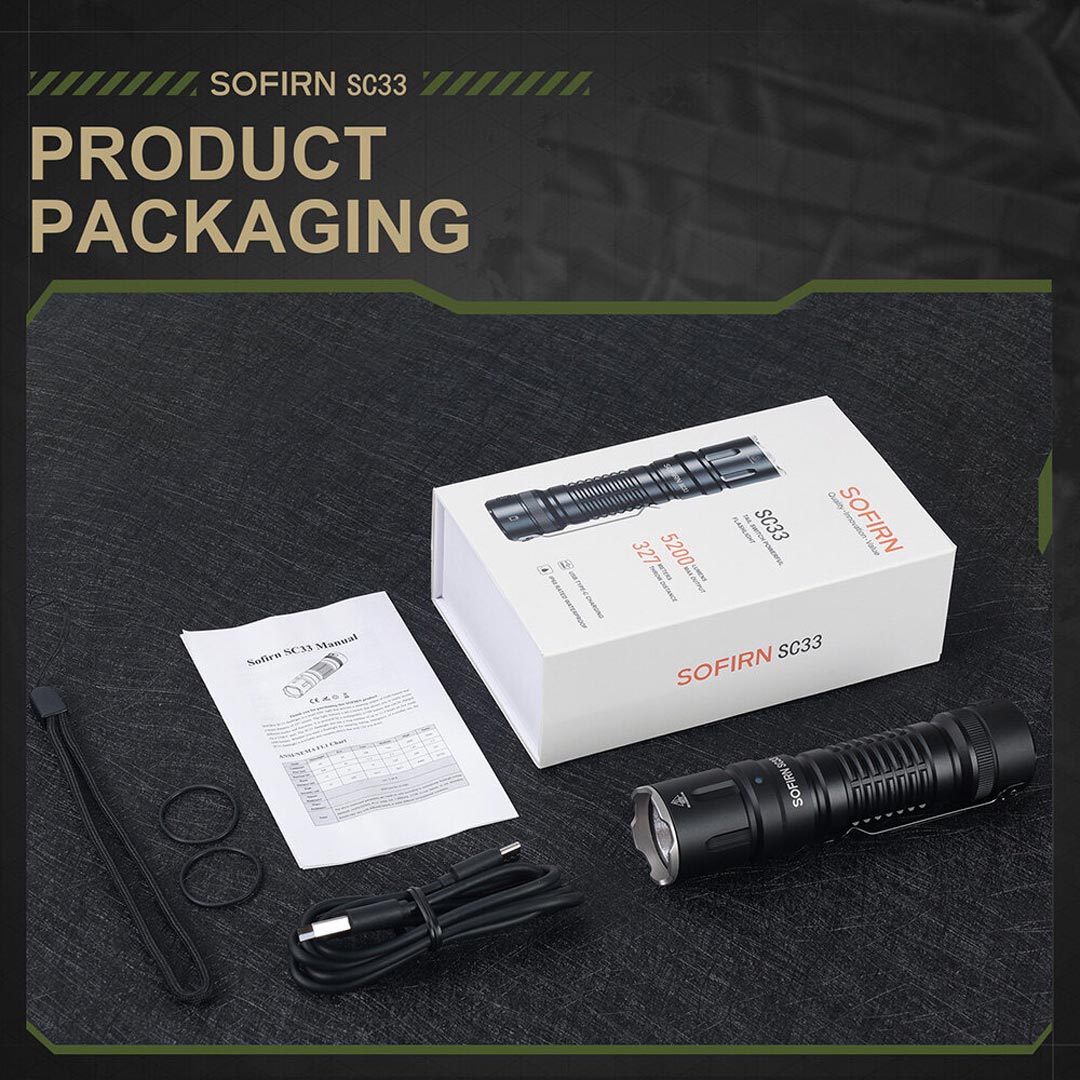 Đèn pin SOFIRN SC33 là mẫu đèn mini EDC siêu sáng có độ sáng 5200 lumen, tầm chiếu xa 327m sử dụng pin sạc 21700 dung lượng cao 4000mAh. Vỏ đèn được gia công từ hợp kim nhôm hàng không 6061-T6, anodize cứng bề mặt HA III chuẩn qu-ân s-ự giúp đèn bền bỉ, cứng cáp, chịu va đập tốt ở điều kiện thời tiết mưa gió, ẩm ướt, phù hợp cho các hoạt động dân dụng như sửa chữa, bảo dưỡng, dã ngoại, cắm trại, thám hiểm,...