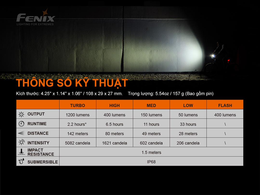 Fenix BC21R V3 với 1 bóng LED Luminus SST-40 có độ sáng tối đa 1200 lumen giúp tầm chiếu xa lên tới 142m