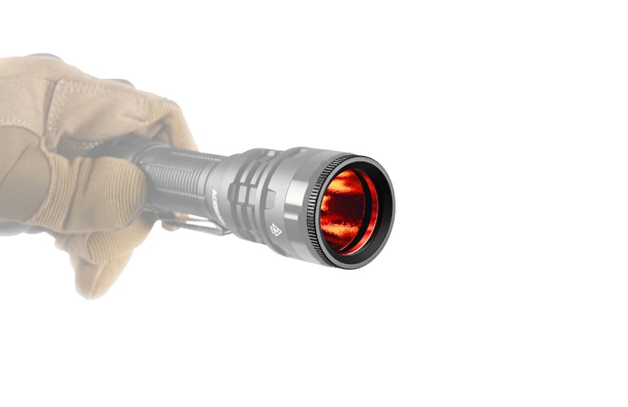 Acebeam P17 kết hợp kính lọc màu đỏ FR20 v2: